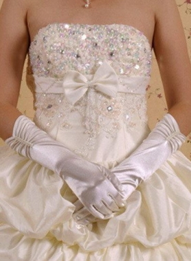 ELBOW LENGTH PEARL SATIN GLOVES /GUANTES SATIN BLANCOS